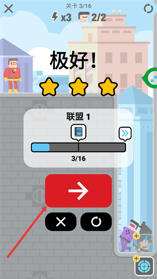 4、成功将所有敌人消灭后即可通关,点击红色箭头按钮进入下一关。