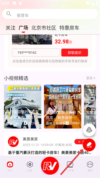 1、打开APP,进入首页后,点击【房车大全】选项,进入房车展示页面。