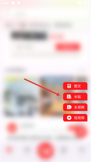 2、在弹出的内容类型选项中,选择【长贴】类型,进入长贴编辑页面。