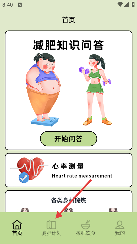2、进入APP首页后,点击底部【减肥计划】选项,进入减肥计划页面。