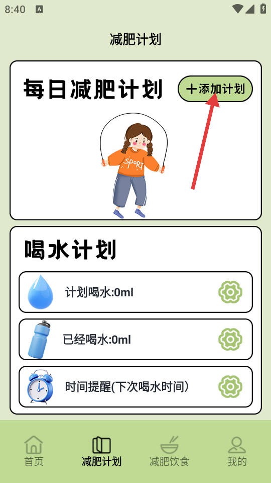 3、在减肥计划页面,点击“每日减肥计划”右侧的【+添加计划】按钮,进入添加计划页面。