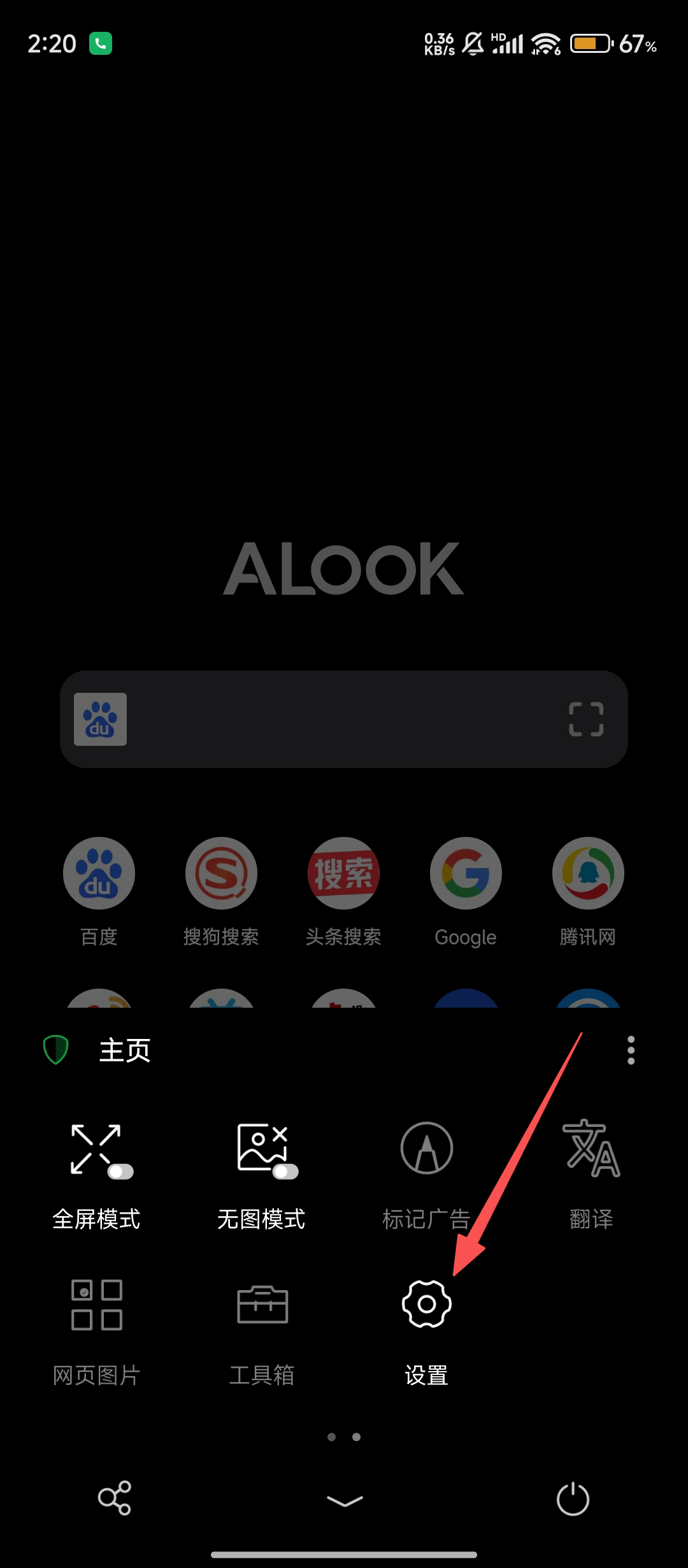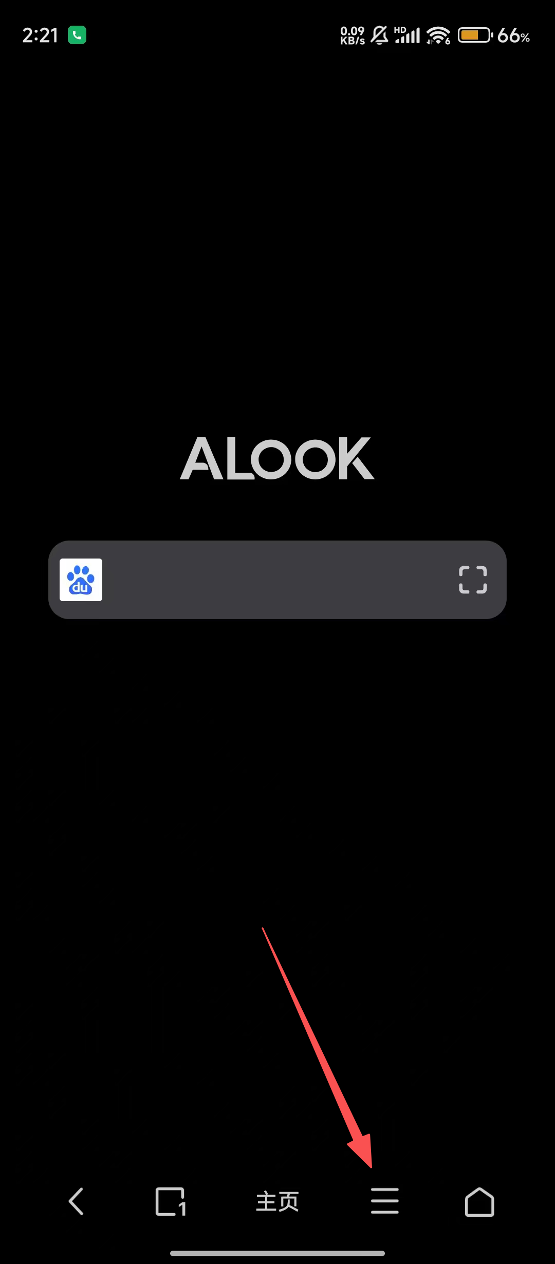 1、打开【Alook】浏览器,点击底部菜单按钮,开启无痕模式设置的第一步。