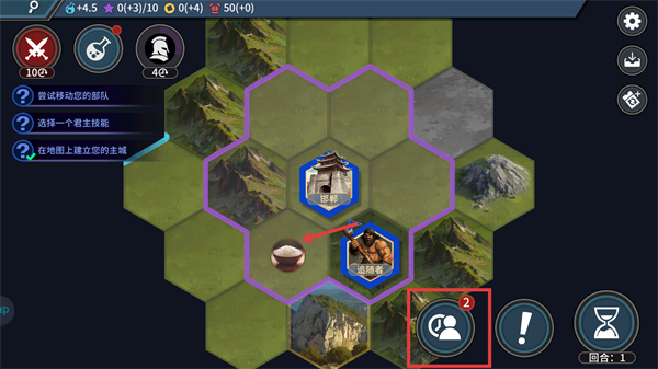 1、点击“新游戏”进入关卡,核心玩法是组建部队、占领地块并建立主城,需按任务指引逐步推进战略布局。