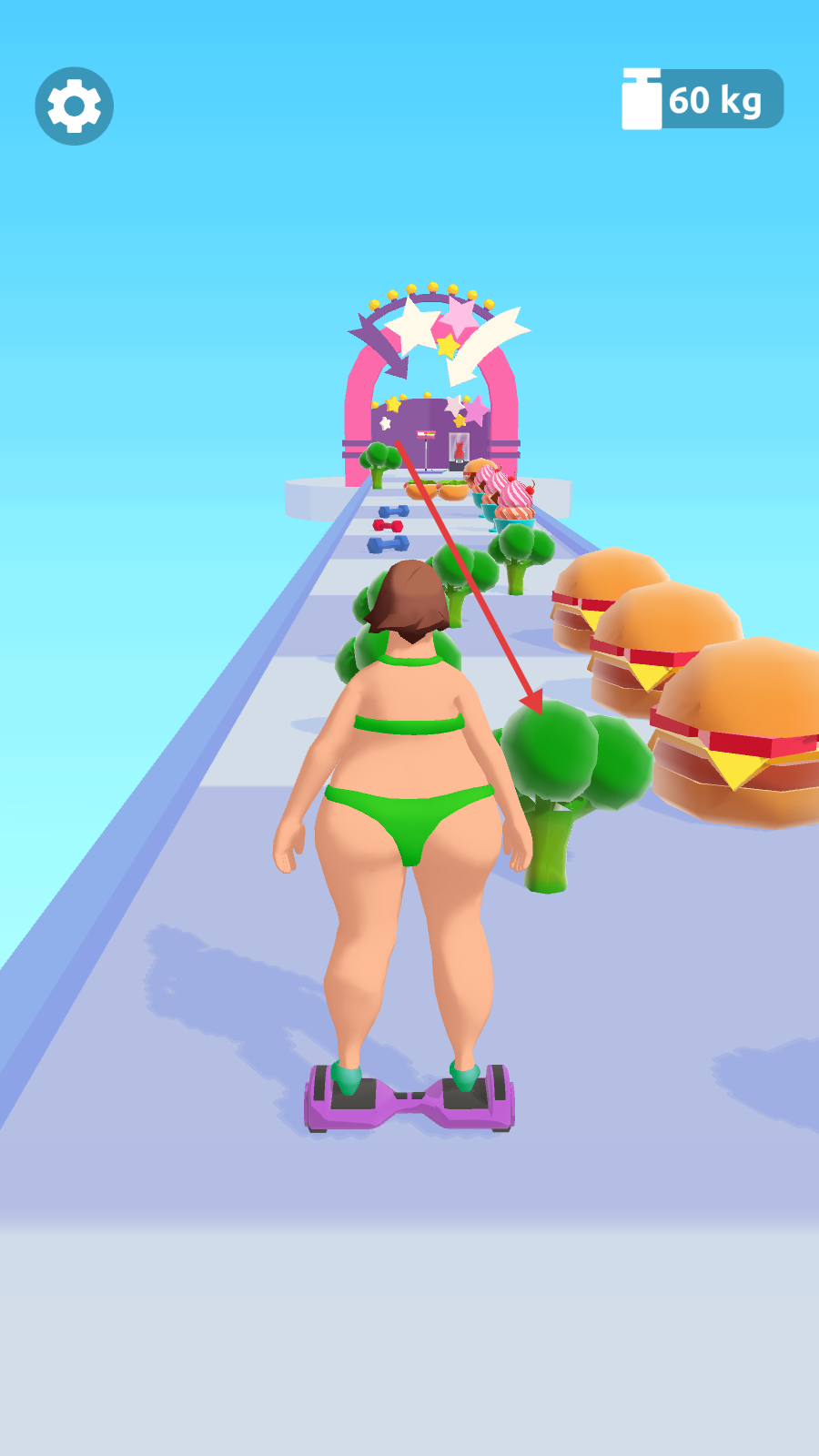 女神大挑战走秀是一款以体重管理为主题的休闲跑酷类游戏,采用物理引擎技术模拟角色体型变化过程。玩家需要控制一位减肥中的女性角色在跑酷过程中选择健康食物和运动方式,通过精准的体重控制达成关卡目标。游戏采用三赛道跑酷设计,沿途设置各种高热量和低卡路里食物,需要灵活选择进食与运动策略,体验趣味十足的体重控制挑战。