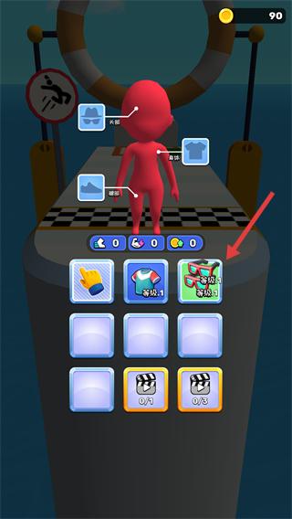 1、在角色装扮界面选中【背包-1】,点击对应部位完成装配,解锁基础装扮属性助力跑酷闯关。