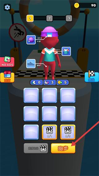 4、全部装扮装配完毕后,点击界面下方【跑步】按钮,正式进入跑酷关卡开启闯关挑战。