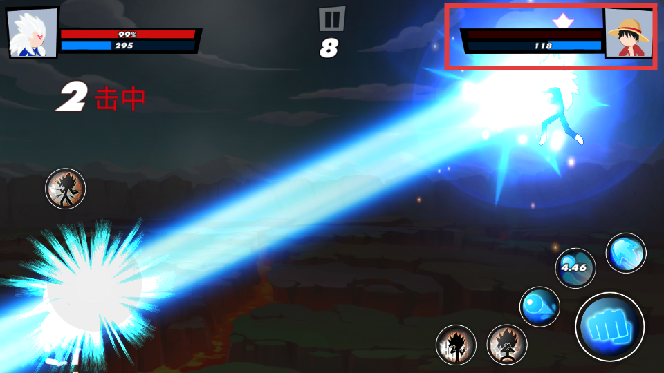 3、释放强力技能削减敌人血量,如将敌人血量降至【0】即可获胜。