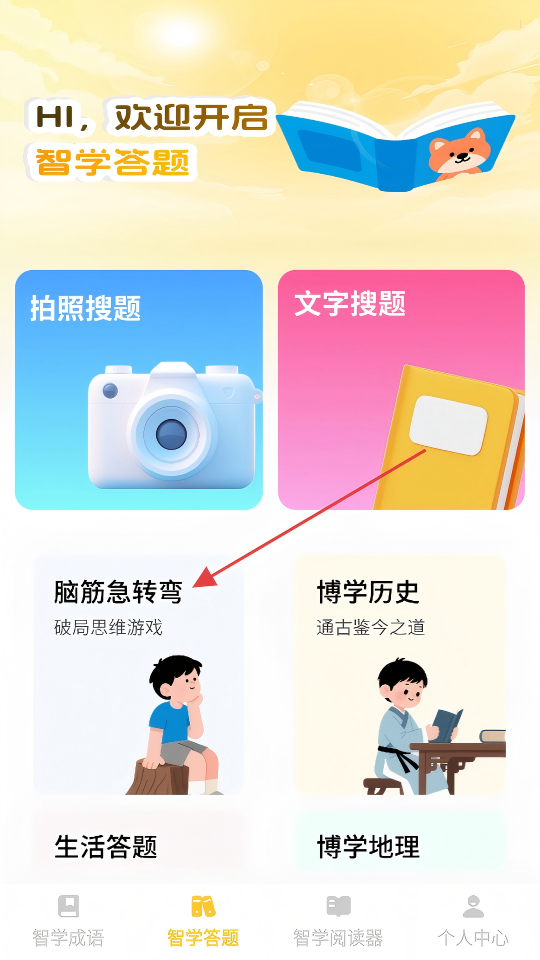 2、进入智学答题页面,选择【脑筋急转弯】。