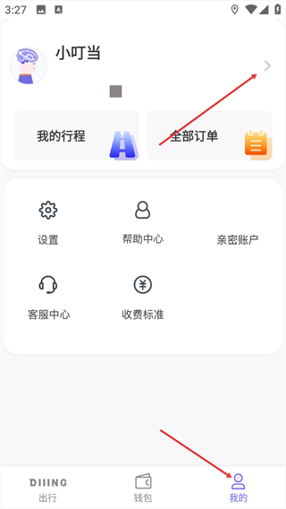 1、在“我的”页面,点击右上角的箭头图标,进入个人中心页面。