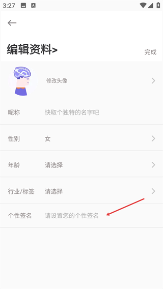 3、在资料编辑界面,选择“行业/标签”选项,进入行业/标签的选择页面。