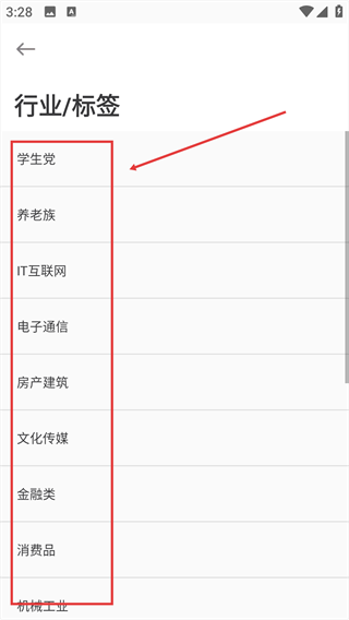 4、选择对应的类别(如学生党、IT互联网等),完成该信息的添加。