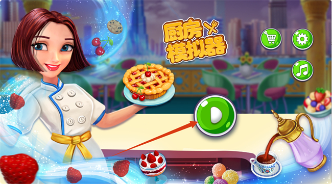 1、进入游戏界面,点击绿色开始键,开启【厨房模拟器】的烹饪之旅,准备体验各类美食制作。