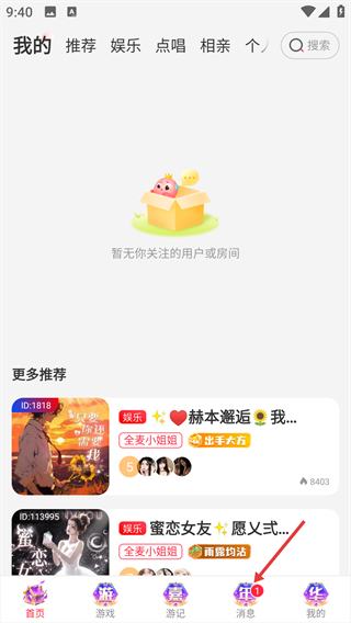 1、点击底部【消息】选项,进入消息板块页面。