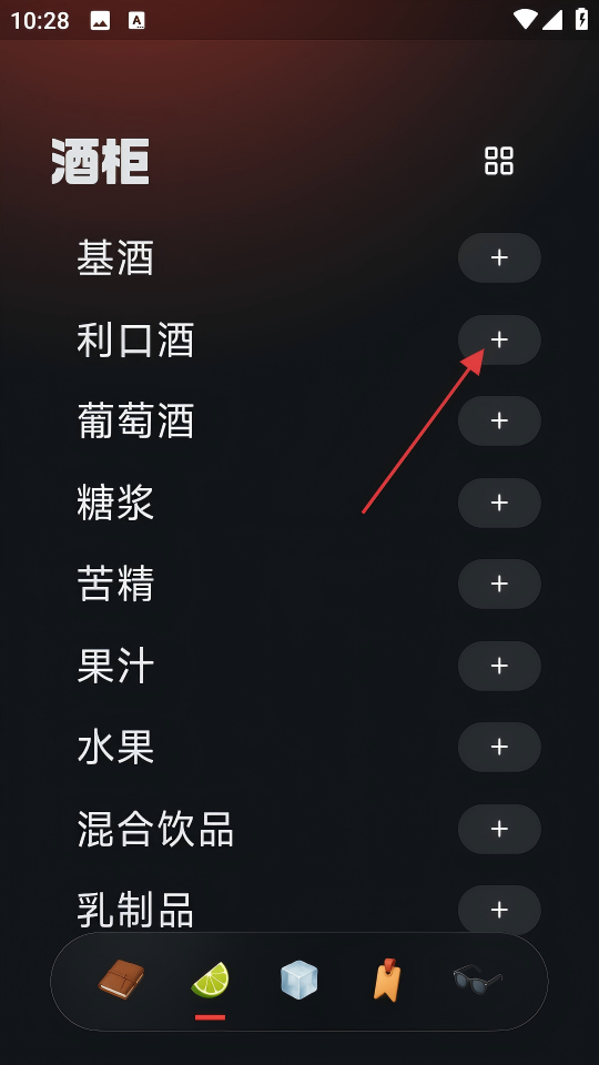 2、进入“发现”板块,点击【利口酒】旁边的+号。