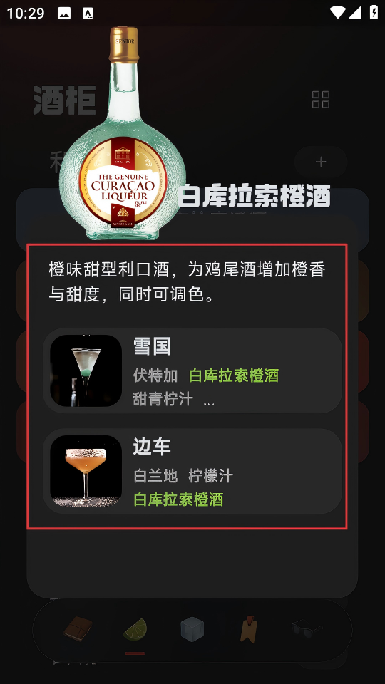 4、推荐智能精准:根据用户录入的已有原料信息,自动匹配并推送可调制的鸡尾酒清单,避免原料浪费,让调酒更具可行性。