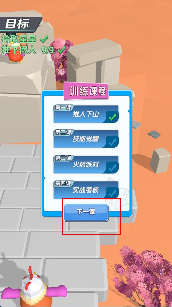3、完成当前训练课程后,点击【下一课】,进入后续课程,学习新技能或挑战新任务。