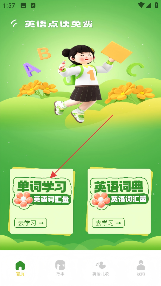 1、打开“英语点读免费”APP,进入首页后,点击【单词学习】。