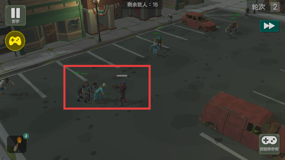 3、操控幸存者与僵尸战斗,消灭场上所有敌人,注意剩余敌人数量的变化。