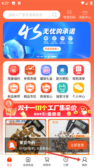 1、打开荃豆中药App,点击底部【我的】,这里可进行登录注册操作呢。