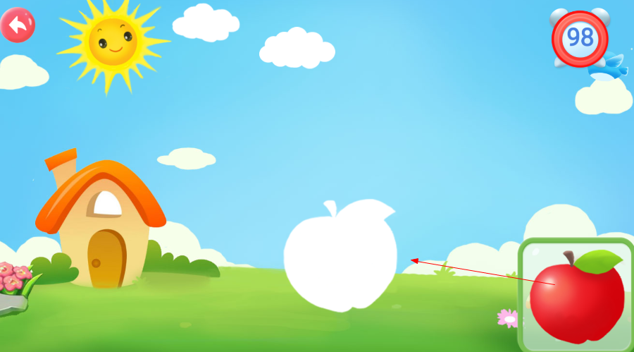 1、在学习关卡中,将相同的水果拖动到对应的空白位置,完成匹配任务。