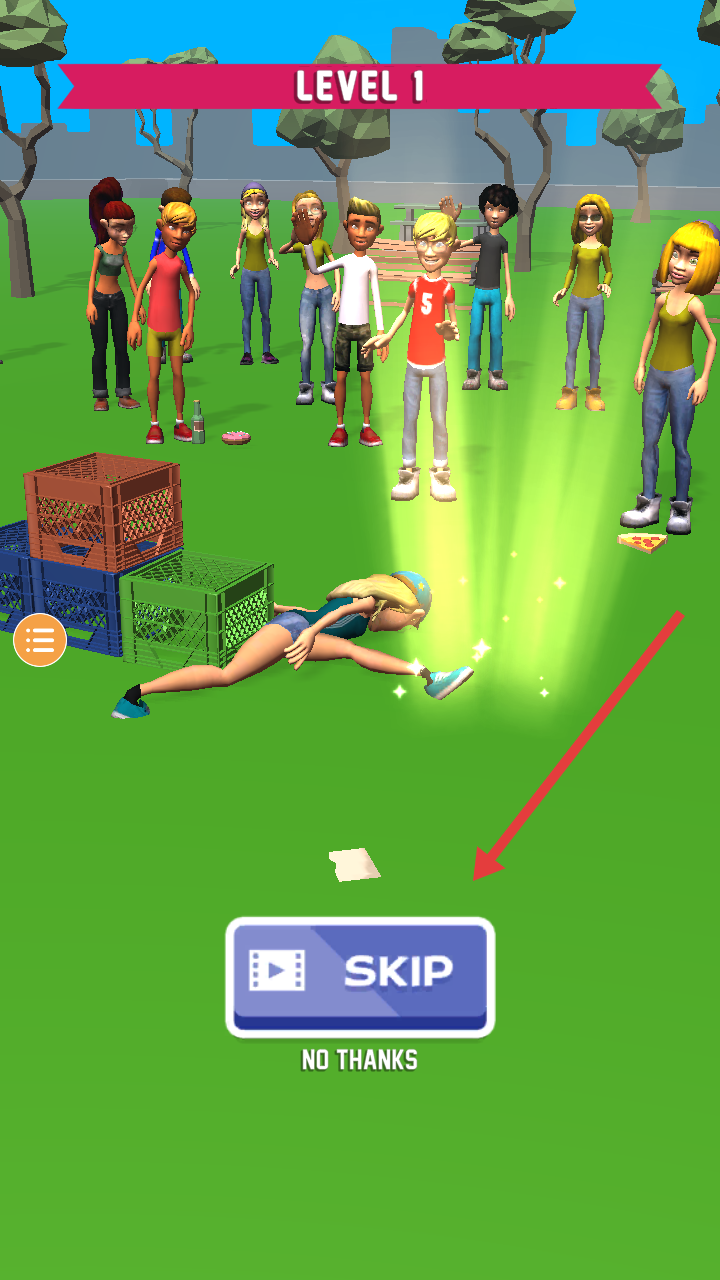 4、若遇到广告提示,可选择SKIP跳过或NOTHANKS继续,调整策略后再次尝试,顺利完成关卡。