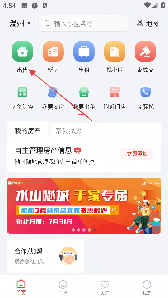 2、进入APP主界面,可根据需求选择功能板块,如【出售】。