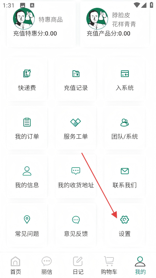 2、进入个人相关页面后,点击【设置】选项进入对应页面。