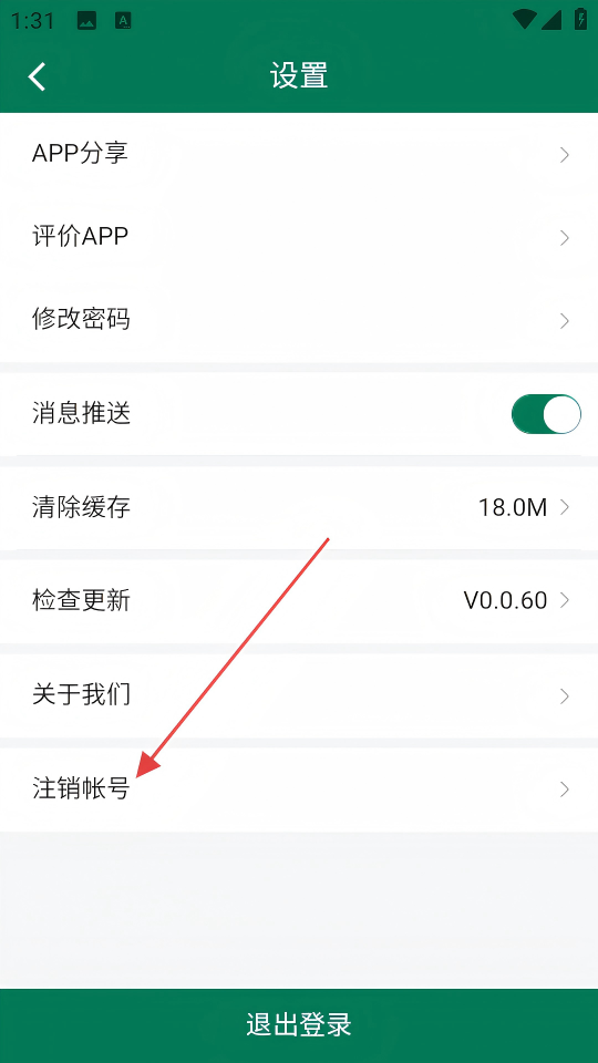 3、在【设置】页,点击【注销帐号】选项即可进入相关流程。
