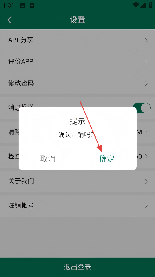 4、进入注销相关流程后,会弹出提示框,点击【确定】按钮完成账号注销。