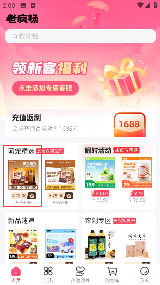 老疯杨是一款集宠物商城与流浪动物救助领养服务于一体的工具,商城汇聚大量宠物用品且持续上新,用户可随心购买,还能发起流浪动物救助需求、对接领养,让救助与领养过程透明化。它支持开通会员解锁专享权益,充值会员可获高额返现,同时提供宠物医生问诊服务,满足宠物饲养与公益救助的双重需求。