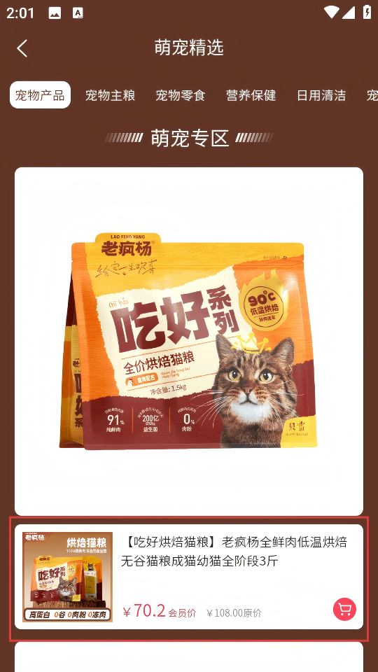 2、进入【萌宠精选】板块后,点击该商品进入详情页。
