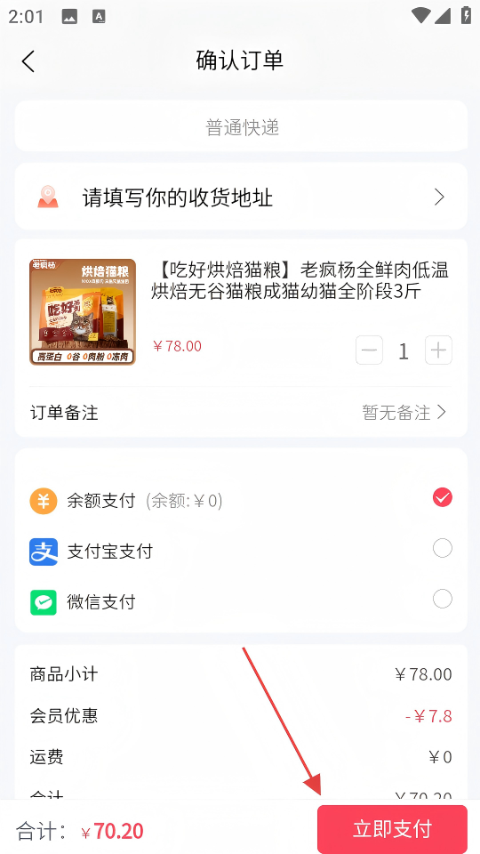 4、进入确认订单页后,填写收货地址,选择支付方式,点击【立即支付】完成购买。