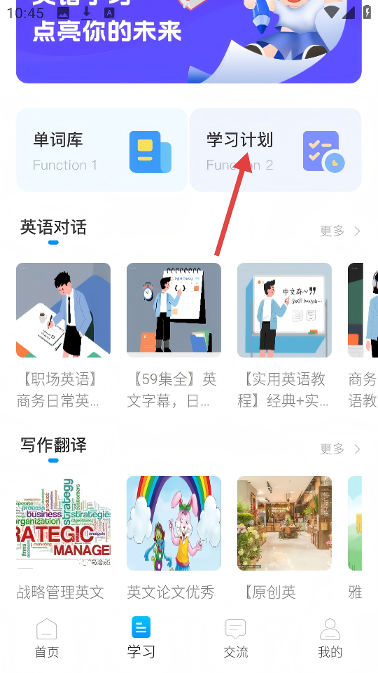 2、在学习页面,点击【学习计划】选项,进入学习计划页面。
