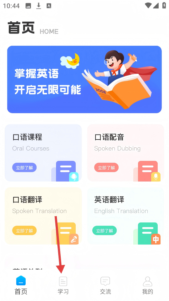 1、点击首页底部的【学习】按钮,进入学习页面。