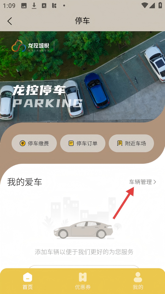 2、在停车页面,点击【车辆管理】选项,进入车辆管理页面。
