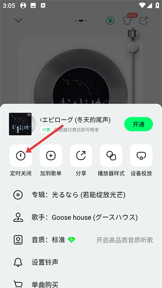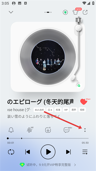 2、在【冬天的尾声】歌曲播放页,点击右下角的二点图标打开操作菜单吧。