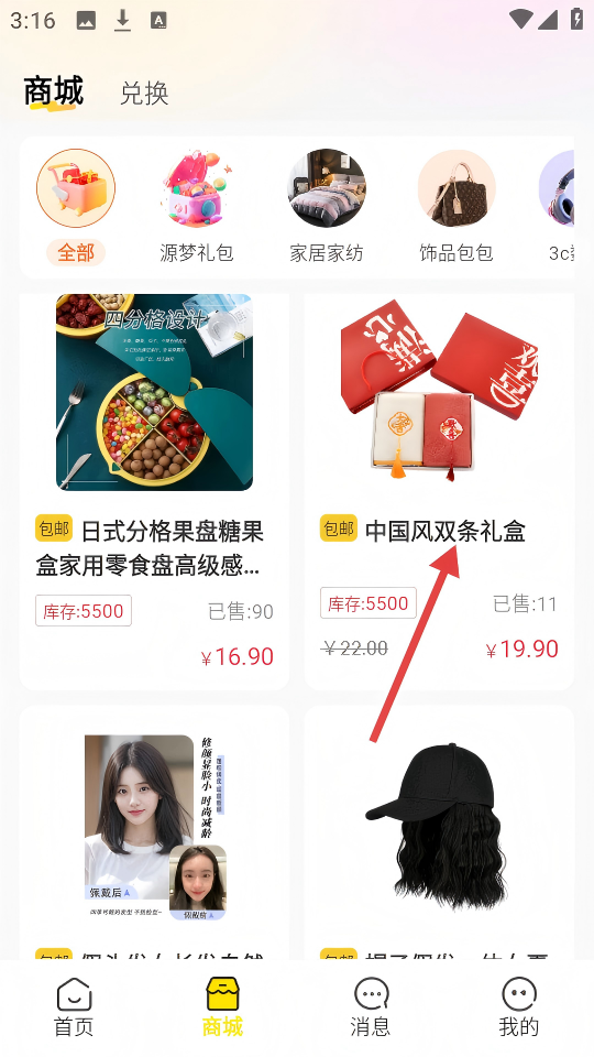 2、在商城页面,点击【中国风双条礼盒】商品,可进入其详情页面。