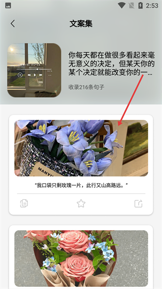 3、合集管理个性:允许用户按主题、喜好创建专属合集,支持自由添加、删除文案,实现个性化内容收纳与管理。