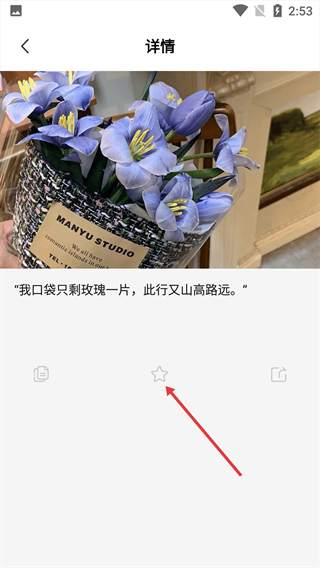 4、点击页面中的【收藏】按钮(星星图标),即可将该文案内容收藏保存。