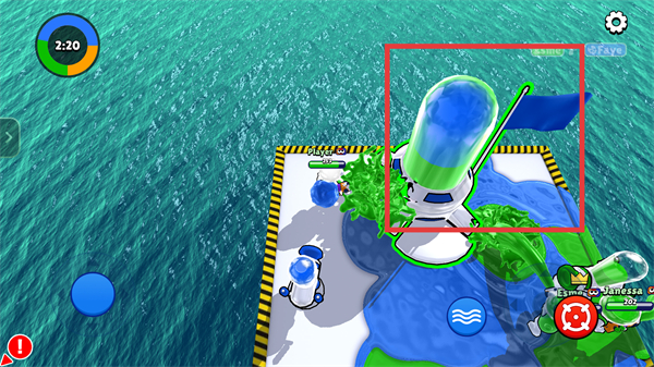 3、向红框内的【装置】区域喷射颜料,占领该装置以扩展己方染色范围,提升场景占比优势。