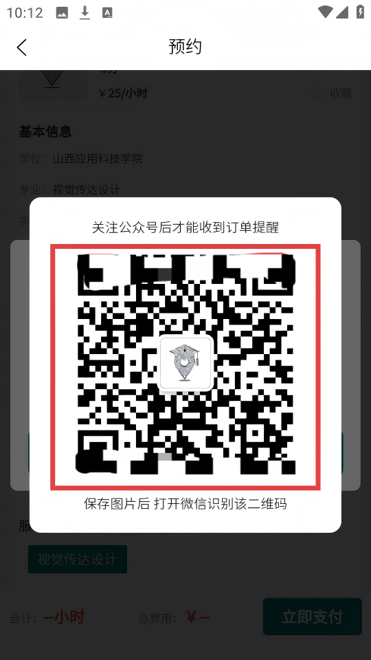 4、保存图片中的二维码,打开微信识别该二维码以关注公众号,从而能收到订单提醒。