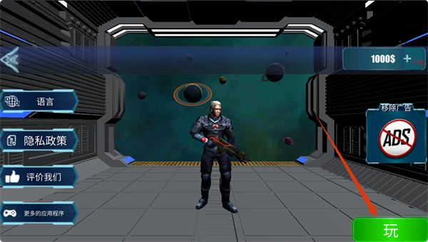 1、点击【玩】进入游戏,可先查看语言、隐私政策等设置,熟悉游戏界面,为战斗做好准备。