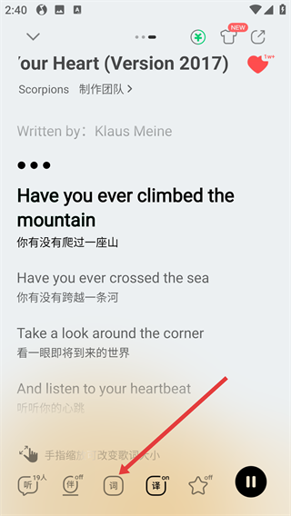 2、在歌词界面点击【词】按钮,调出歌词设置选项呀。