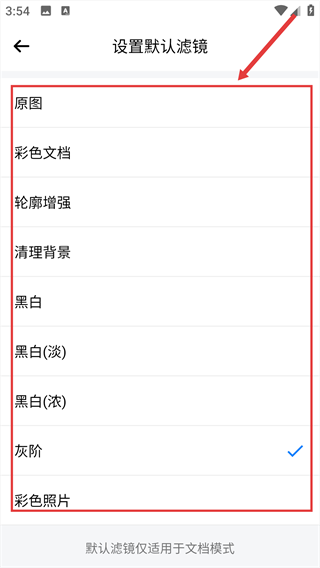 3、从滤镜列表中选择目标滤镜,完成默认滤镜的选定。