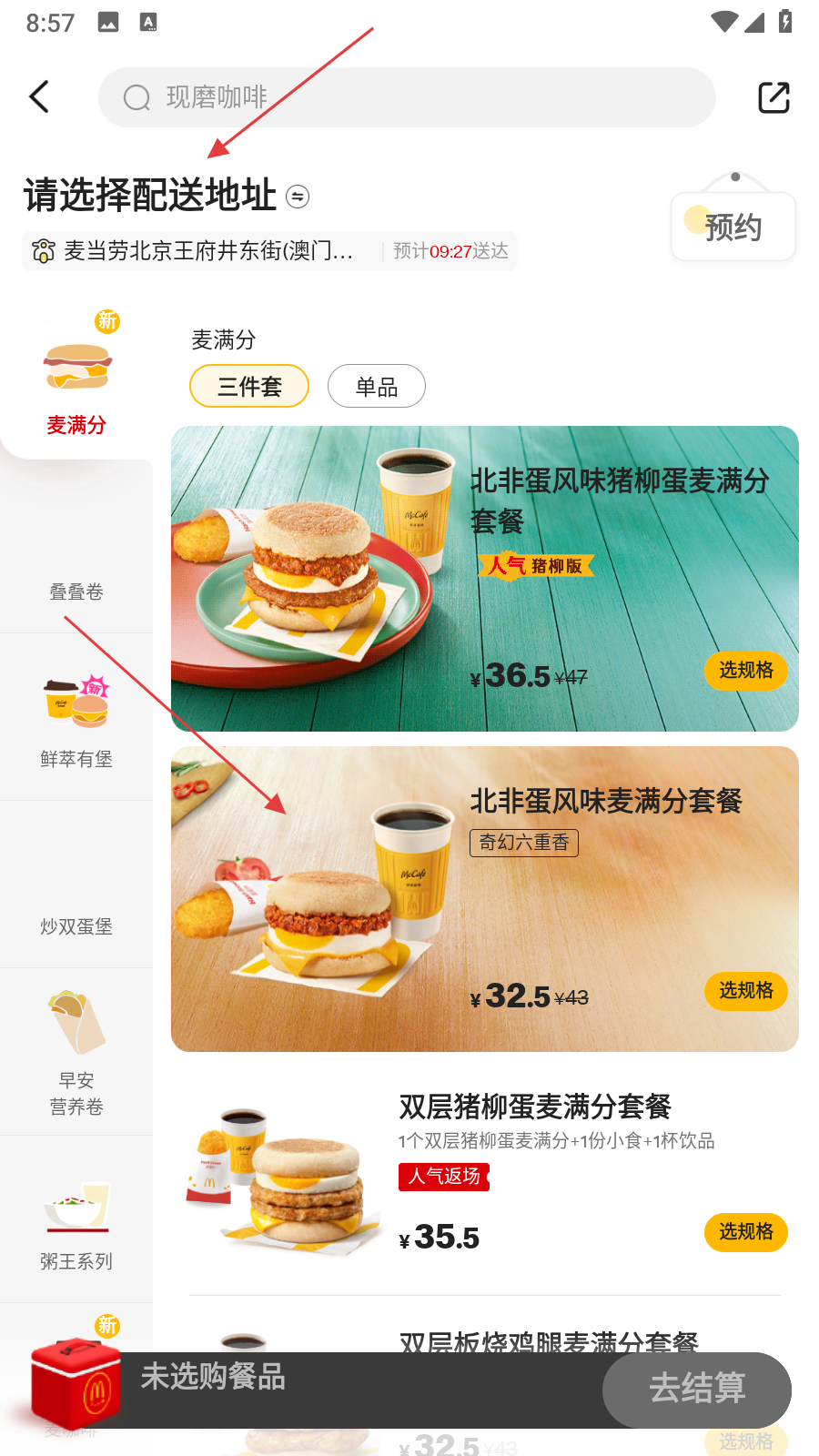 4、逛餐品分类,挑喜欢的餐品,进餐品详情,点【加入购物车】,准备结算或继续加购。
