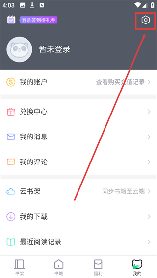 1、进入【书架】页面,点击底部导航栏的【我的】按钮,进入个人中心相关界面。