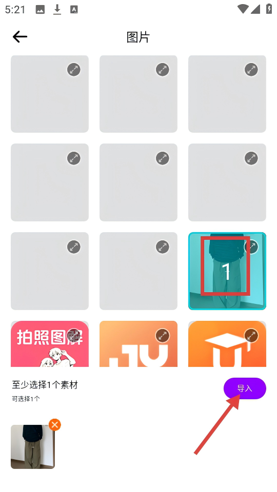 4、在图片选择页面,选好要导入的图片后,点击【导入】按钮。