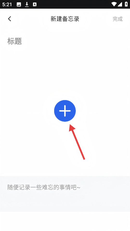 3、在新建备忘录页面,点击中间的【+】号,进行内容添加。