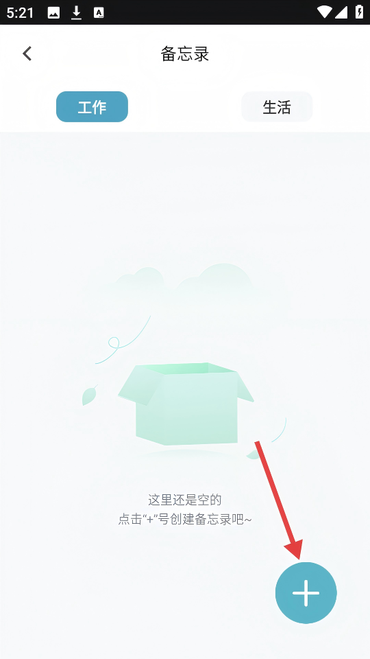 2、在备忘录页面,点击右下角的【+】号,开始创建备忘录。