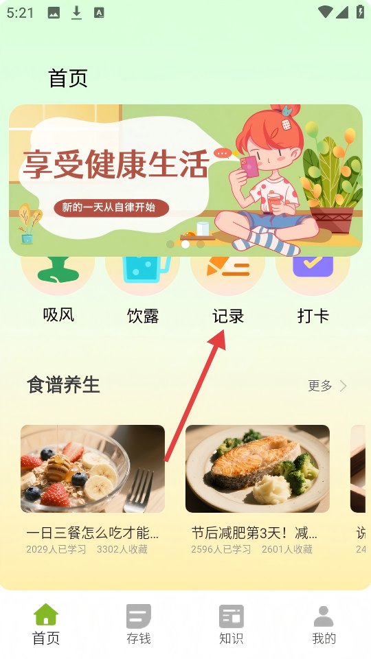 1、在首页点击【记录】按钮,进入记录相关页面。
